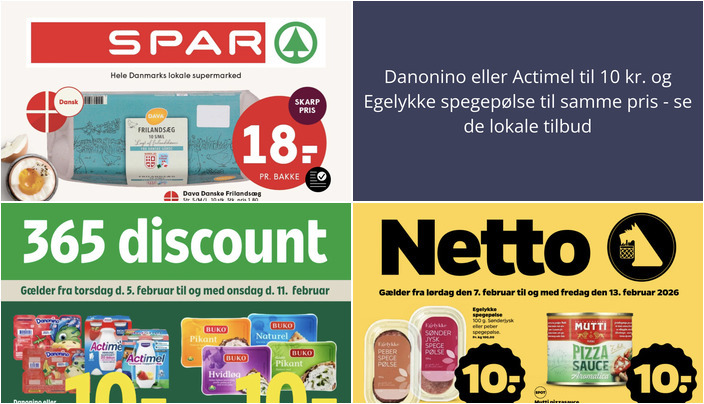 Coop365 tilbyder Danonino eller Actimel i størrelser mellem 300-400 g til en pris af kun 10 kr. pr. stk. Tilbuddet gælder fra torsdag den 5. februar til onsdag den 11. februar.